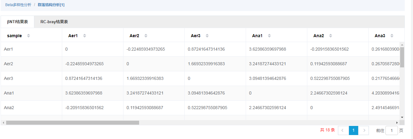 分析結果包含2個(gè)表格,分別記錄兩兩樣品之間βNTI和RCbray的值。