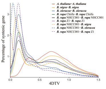由于在同一基因組上共線(xiàn)性的染色體片段中有旁系同源的基因集,因此可以通過(guò)這些成對的共線(xiàn)性片段追溯目的物種曾經(jīng)的復制事件。通過(guò)研究全基因組復制事件,可以確定物種發(fā)生全基因組倍增時(shí)間,同時(shí)也通過(guò)分化時(shí)間的比對來(lái)判斷復制是發(fā)生在分化之前還是分化之后。常用方式:KS/4DTV