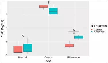 在萊茵蘭德試驗區,與對照試驗區相比,施氮提高了柳枝稷的產(chǎn)量,但是在其他2個(gè)地區中沒(méi)有發(fā)現顯著(zhù)差異;