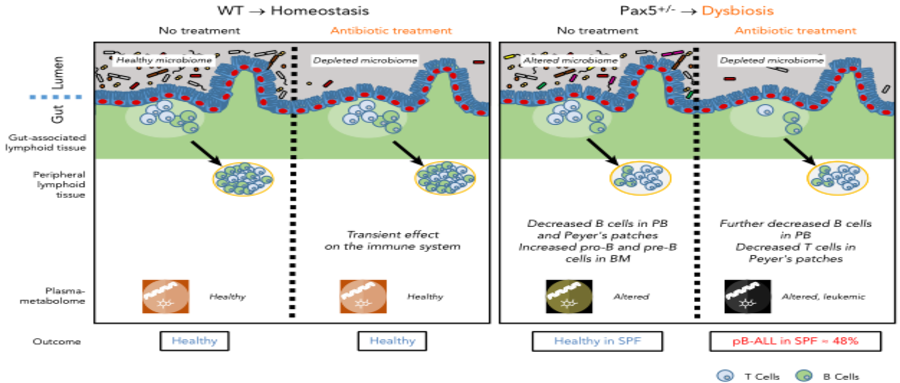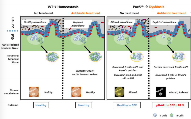 • 對pB-ALL的遺傳易感性形成了一個(gè)不同的腸道微生物群。