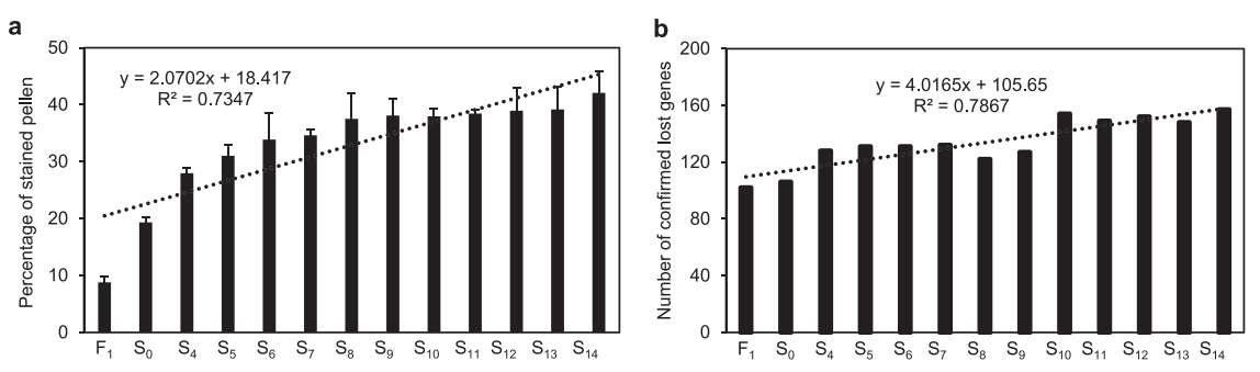 圖3F1及早期世代花粉可染性研究(左)及缺失基因數(右)