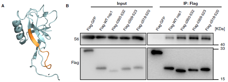 SARS-CoV-2 Nsp1的C端結構域與40S核糖體亞基結合并干擾mRNA的進(jìn)入,但實(shí)驗發(fā)現突變的SARS-CoV-2 Nsp1保留了與40S核糖體亞基的結合能力(圖5B)。