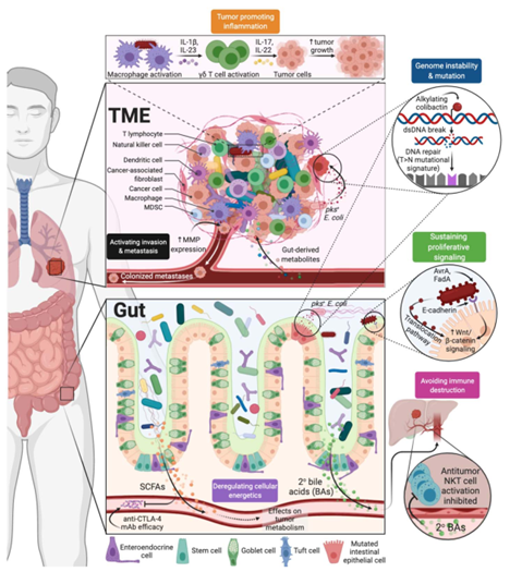 腸道中存在許多的微生物,它們是宿主能量獲取的關(guān)鍵中介,并且能將膳食營(yíng)養素代謝為許多的生物活性物質(zhì),從而作為溝通腸道菌群與宿主相互作用的橋梁。腸道菌群由宿主基因、免疫應答及飲食因素調控,而腸道菌群的代謝和免疫潛能決定了其在宿主健康和疾病中的重要意義。研究表明,腸道微生物紊亂與多種疾病的發(fā)生密切相關(guān),比如消化系統疾病、內分泌系統疾病、精神系統疾病、自身免疫性疾病以及一些感染性疾病?;谶@些影響,人們越來(lái)越關(guān)注通過(guò)微生物靶向治療癌癥和其他疾病。