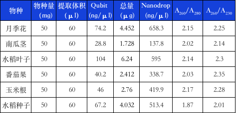適用范圍廣:針對多糖多酚或高淀粉植物組織提取,如成熟水稻葉片,擬南芥種子,蘋(píng)果,西瓜果肉,月季,煙草,沙棘,百合等植物組織;