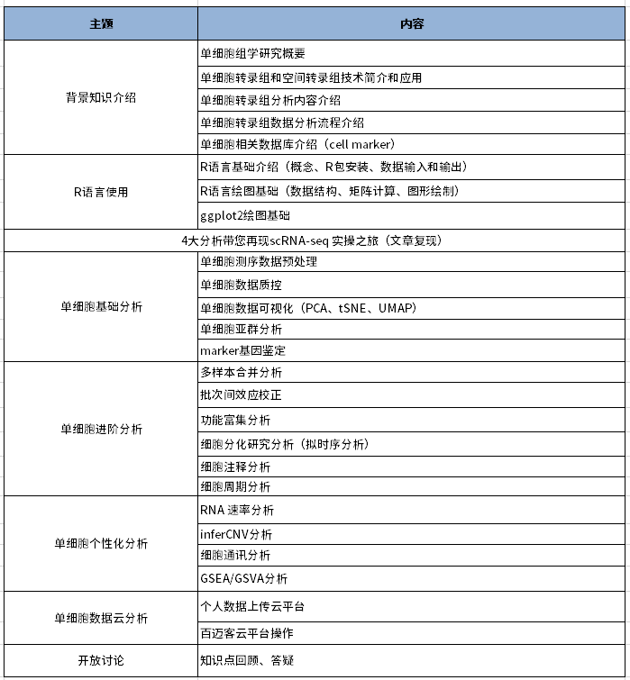 細胞和空間組學(xué)技術(shù)的快速發(fā)展正在開(kāi)啟生命科學(xué)的時(shí)空多維新時(shí)代,為復雜疾病的細胞異質(zhì)性研究提供新視角,引領(lǐng)了生物學(xué)從“時(shí)間”維度走向“空間”維度,廣泛應用于動(dòng)植物生長(cháng)發(fā)育、腫瘤精準治療研究等方向。為了促進(jìn)單細胞數據挖掘和分析,百邁客特開(kāi)展的單細胞數據分析課程,將為您呈現細胞分群、細胞分化研究、marker基因鑒定等分析內容,幫助研究者實(shí)現了單細胞數據更快、更準、更高的分析轉化。