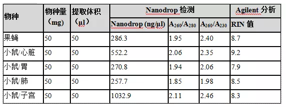 1.DNA濃度/純度檢測:提取不同動(dòng)物組織中的DNA,然后檢測DNA的濃度和吸光度。
