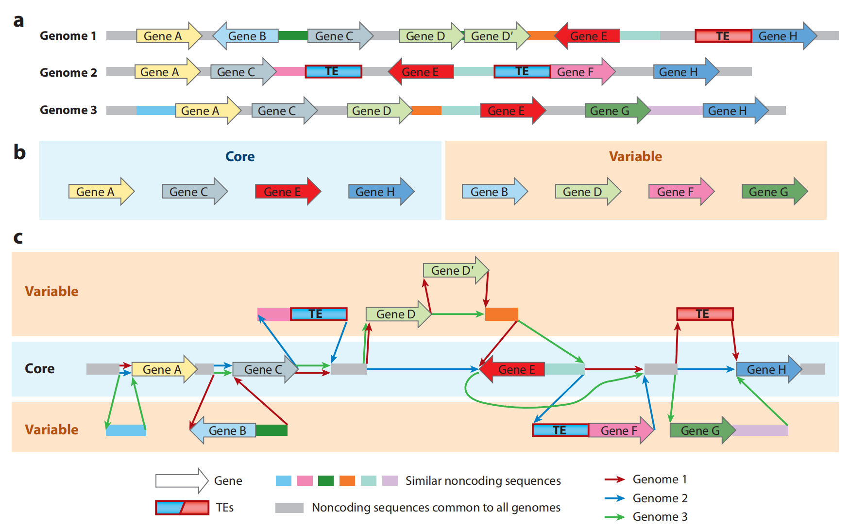 不同物種泛基因組研究對象可能不同:細菌基因組主要由編碼基因組成,非基因序列相對較少,因此細菌泛基因組研究更多的是針對蛋白編碼基因含量進(jìn)行。在動(dòng)植物上則因為基因組上有大量的具有一定功能的非基因序列,因此真核生物中主要對序列和基因兩種形式進(jìn)行研究。與植物泛基因組不同,已發(fā)表的動(dòng)物泛基因組中更多是以序列為單位進(jìn)行。