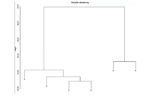 基于基因表達量的樣本系統聚類(lèi)樹(shù): 在聚類(lèi)中歐氏距離求兩點(diǎn)的距離,聚類(lèi)中用類(lèi)平均法(average)計算集合之間的距離。同一枝上的樣本具有更高的相似性。
