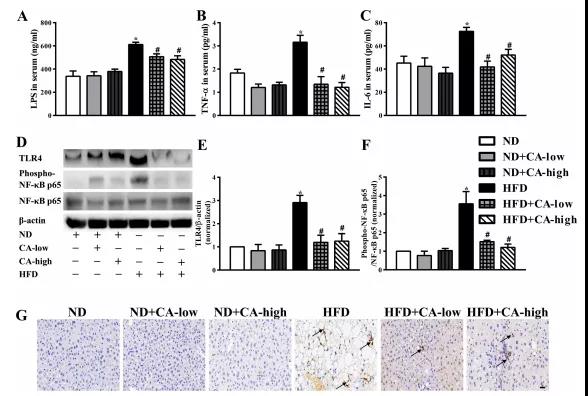4.補充CA可減輕高脂喂養小鼠的內毒素血癥和隨后的促炎反應? ? ? ? ?