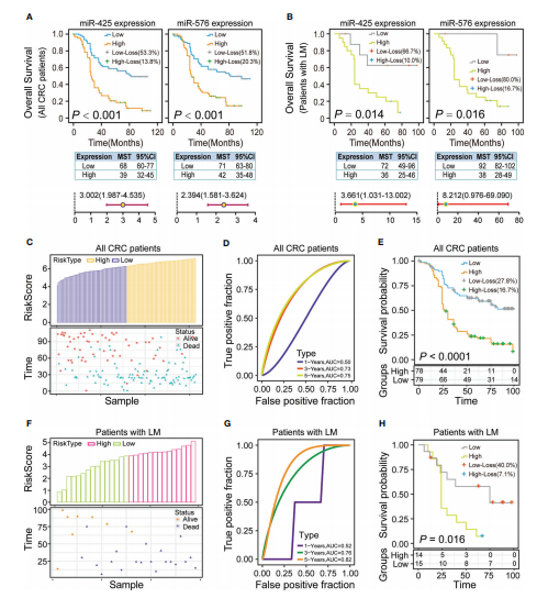 1、高水平的miR-425和miR-576與CRLM相關(guān)