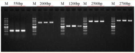圖4:以1μl人肝癌細胞RNA為模板,用BiomarkerScript Ⅱ 1st Strand cDNA Synthesis Kit進(jìn)行逆轉錄,得到cDNA產(chǎn)物。再以100?ng cDNA為模板,用Biomarker HS 2× HF Master Mix進(jìn)行PCR擴增,將得到的產(chǎn)物進(jìn)行瓊脂糖凝膠電泳,結果所示:擴增條帶單一且產(chǎn)量高。