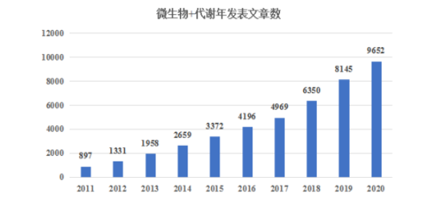 小編先在PubMed網(wǎng)站搜索了一下微生物組和代謝在2011-2020年的發(fā)文情況。以微生物組和代謝組為關(guān)鍵詞搜索文獻數量信息。從數據中我們可以看到,微生物和代謝相關(guān)文章在逐年增加,47.3%的微生物發(fā)表文獻中都包含代謝組,微生物組+代謝組研究已逐漸成為微生物研究中的重要多組學(xué)研究思路。