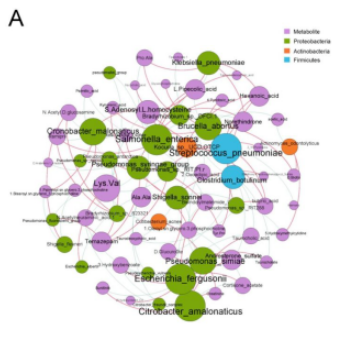 圖2 糞便微生物群和代謝物的聯(lián)合分析鑒定COPD相關(guān)網(wǎng)絡(luò )