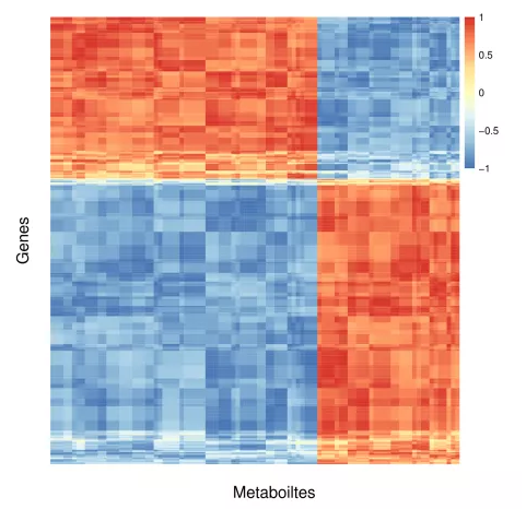 差異代謝物和差異功能基因的豐度相關(guān)性示例熱圖