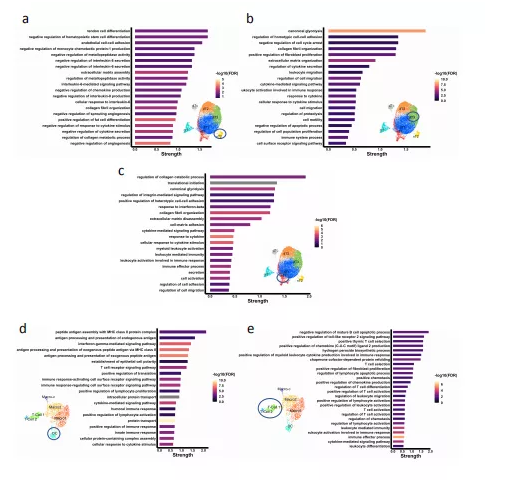 從細胞間相互作用分析產(chǎn)生ST指示性數據表明基質(zhì)誘導免疫調節。因此假設肌腱內免疫區室的主要作用是調節和解決損傷;然而隨著(zhù)微創(chuàng )傷的累積,肌腱細胞發(fā)起的碎片去除和基質(zhì)修復的基本過(guò)程可能導致免疫區室陽(yáng)性擴增。進(jìn)一步提出,在患者肌腱內,免疫穩態(tài)可能變得不平衡,激活的免疫細胞由內皮細胞和基質(zhì)細胞引發(fā),促進(jìn)炎癥循環(huán)和異常組織修復。炎癥環(huán)境,包括在這個(gè)初步肌腱圖譜中明確證明的細胞因子通路,在一系列炎癥性RMDs中產(chǎn)生有效的免疫干預。最值得關(guān)注的是在人類(lèi)肌腱疾病中定位和研究這些通路的潛力。