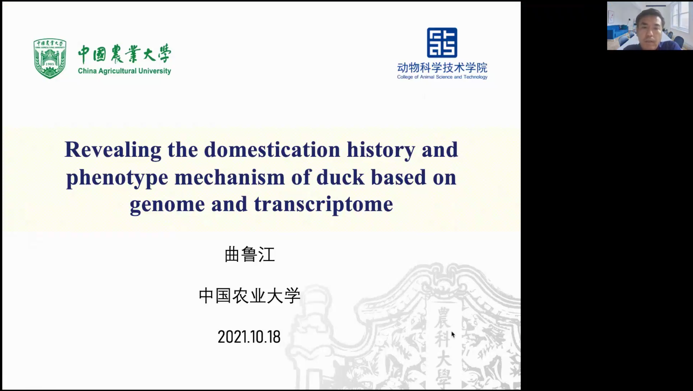 中國農業(yè)大學(xué)曲魯江教授詳述了鴨的馴化歷史和表型機制,研究團隊利用野生群體綠頭鴨和廣泛的家鴨遺傳資源,揭示了家鴨的馴化時(shí)間發(fā)生在距今 2200年前,發(fā)現與大腦、神經(jīng)發(fā)育以及脂質(zhì)代謝相關(guān)的基因在馴化過(guò)程中經(jīng)歷了高強度的選擇。并尋找到鴨白羽性狀的原因突變位點(diǎn)以及潛在的與肉質(zhì)、視覺(jué)、飛行等表型相關(guān)的候選基因、蛋肉鴨之間的差異基因,這些差異基因與免疫和繁殖性狀有緊密的關(guān)聯(lián)。根據表達數據識別的性別偏向表達基因在馴化過(guò)程中具有獨特的進(jìn)化特性,可能對應著(zhù)馴化過(guò)程中性選擇和遺傳約束的動(dòng)態(tài)變化。