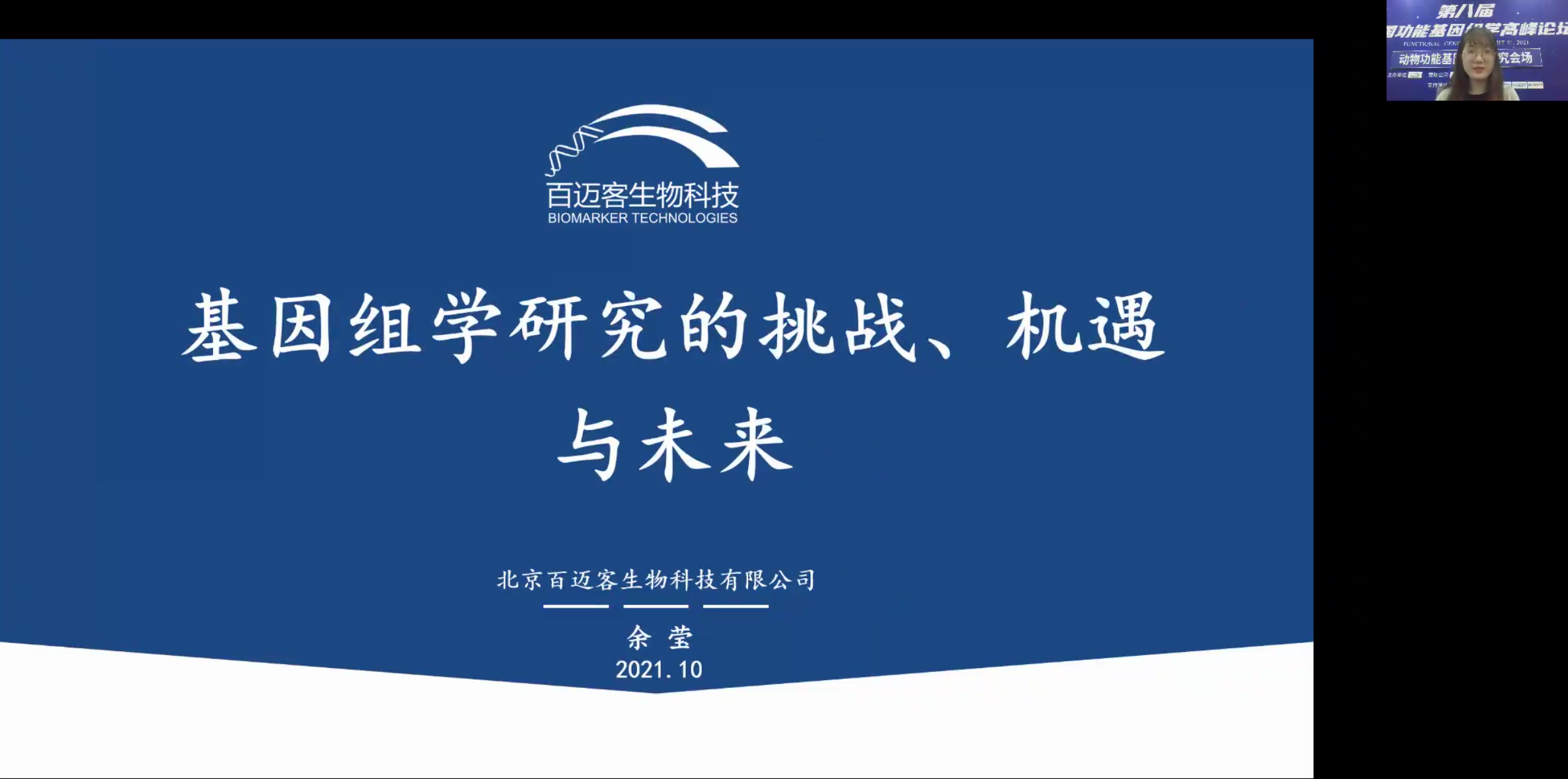 2021年10月18日,由北京百邁客生物科技有限公司主辦的“第八屆全國功能基因組學(xué)高峰論壇-動(dòng)物分會(huì )場(chǎng)”線(xiàn)上直播會(huì )議完美落幕。