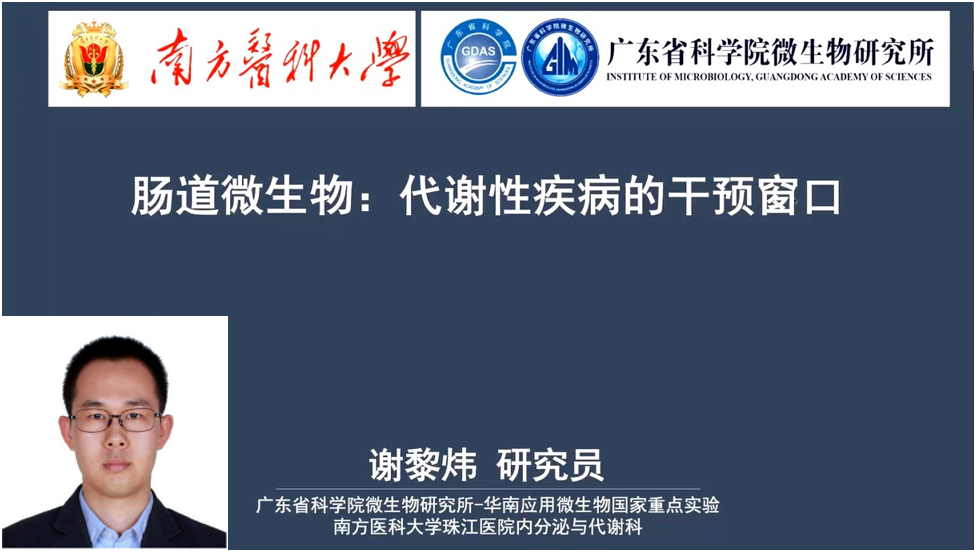 廣東省微生物研究所謝黎煒研究員講解了“腸道微生物:代謝性疾病的干預窗口”謝老師首先介紹了腸道菌群是多因素誘發(fā)肥胖癥的承載體,代謝性疾病,例如:2型糖尿病,肥胖和代謝性肝病等,嚴重損害身體健康,甚至致殘致死。研究發(fā)現代謝性疾病的發(fā)生和發(fā)展伴隨腸道微生物多樣性、種類(lèi)和功能的變化,謝老師團隊近期開(kāi)展的短期理床低碳減重研究和益生菌代謝產(chǎn)物緩解機體糖脂代謝的研究為代謝性疾病的腸道干預提供了有力的證據。