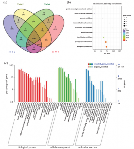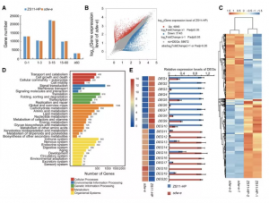 作者對低溫脅迫(12℃)條件下,對第0、2、4天水稻花序上3.5-4.5mm的幼穗進(jìn)行取樣, 做 RNA-seq分析 ,分析兩親本在低溫脅迫條件下,差異基因表達情況。結合BSA關(guān)聯(lián)分析的定位區間,發(fā)現候選區域內有50個(gè)差異表達基因。通過(guò)對差異表達基因進(jìn)行GO和KEGG富集功能分析結合功能富集分析,確定4個(gè)(Os09g0514200、Os09g0516500、Os09g0516600和Os09g0511600)潛在候選基因與耐寒性相關(guān);進(jìn)一步通過(guò)qRT-PCR驗證這4個(gè)基因的表達情況,結果顯示與轉錄組表達一致。