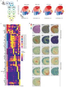 大腦是一個(gè)具有精密組織結構的重要器官。對于大腦結構-功能的關(guān)系、發(fā)育過(guò)程中大腦皮層以及退行性神經(jīng)疾病領(lǐng)域的研究,空間轉錄組可以揭示更多的信息。單細胞和空間轉錄組結合可以將關(guān)注的細胞類(lèi)型及亞型√確的錨定到空間位置上,解析不同功能區域與細胞類(lèi)型及亞型的關(guān)聯(lián)性。