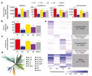 在用于GWAS的標記中,最初使用的是SSR標記,后來(lái)SNP標記成為常用標記。但是,研究人員逐漸意識到基于SNP標記的GWAS分析不足以解釋的群體中全部的遺傳變異。并且,隨著(zhù)測序技術(shù)的發(fā)展,在人以及諸多動(dòng)植物中發(fā)現了大規模的SVs [包括拷貝數變異(CNV)/存在缺失變異(PAV)和易位/倒置(translocations/inversions)]與疾病、馴化及重要農藝性狀有關(guān)。本期推文,我們一起來(lái)看一下SVs在動(dòng)植物群體研究中的進(jìn)展。