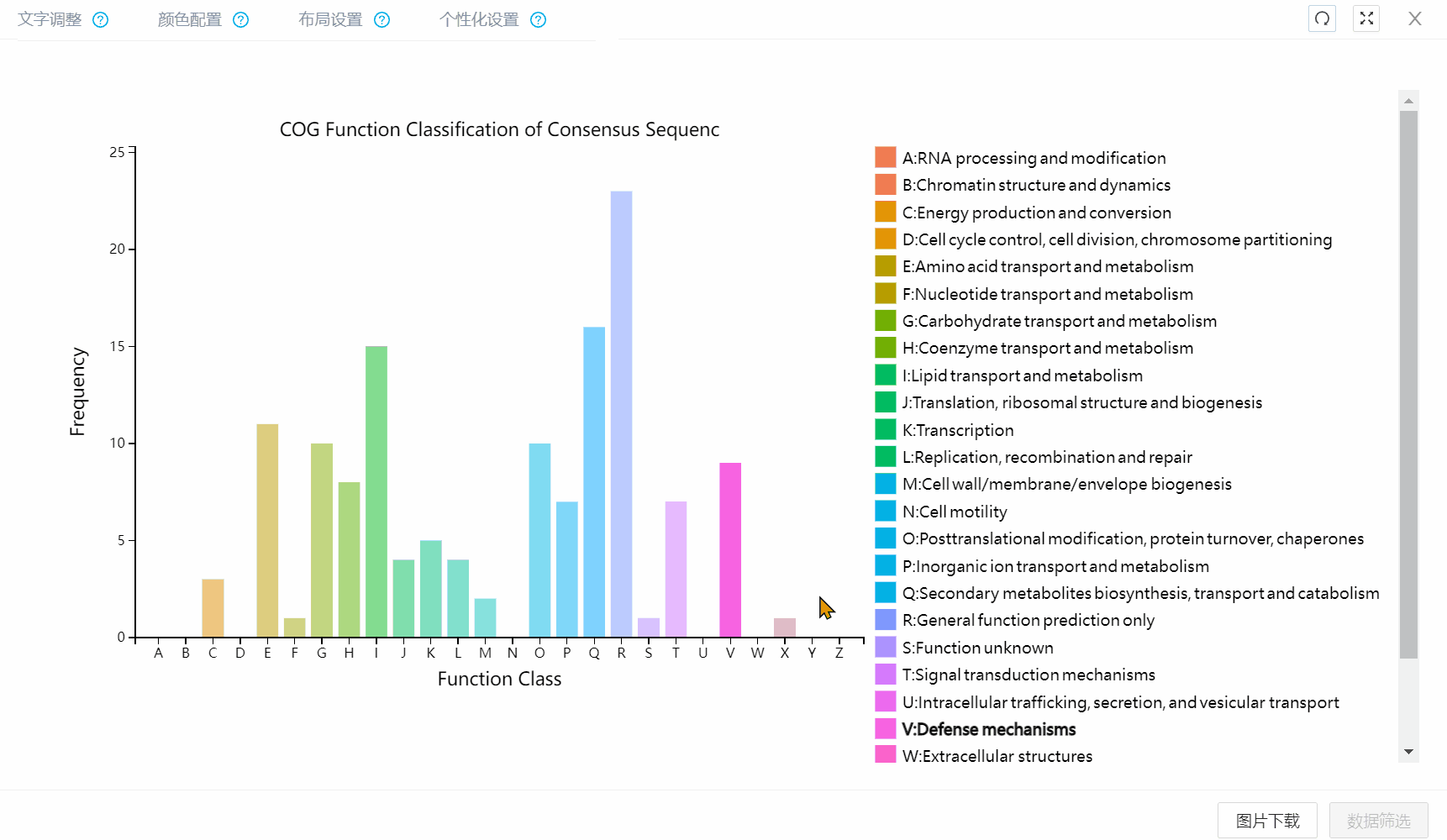 通過(guò)高分文章的比較我們不難發(fā)現,發(fā)文檔次越高,文章的圖表往往越漂亮。而這些圖標的美觀(guān)很大程度取決于好看的配色,但是美學(xué)這個(gè)東西總是千人千面,標準的分析結果很難同時(shí)滿(mǎn)足大多數人的需求,所以圖表的顏色調整在圖表生成中往往占據著(zhù)重要的地位。為了滿(mǎn)足客戶(hù)的分析需求,百邁客轉錄組云平臺開(kāi)發(fā)了“顏色配置”的新功能,圖表配色一鍵更換,全部換?部分換?想怎么換就怎么換!更有期刊推薦配色送上~