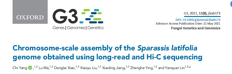 3.Yang C, Ma L, Xiao D, et al. Chromosome-scale assembly of the Sparassis latifolia genome obtained using long-read and Hi-C sequencing[J]. G3, 2021, 11(8): jkab173.
