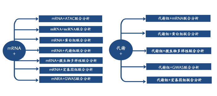 中心法則是遺傳的基礎,在中心法則中,RNA處于重要的中央樞紐地位,轉錄組作為生信科研中的“萬(wàn)金油”,最大的特點(diǎn)就是“短平快”,是功能基因的研究利器,是利用率最高,最成熟的測序手段,在多組學(xué)聯(lián)合中扮演中重要的角色。代謝組是表型的直接體現者,“代謝組+ ”研究模式已經(jīng)在多個(gè)領(lǐng)域廣泛使用,成為深入研究科學(xué)問(wèn)題,系統闡釋作用機制的利器。以下就是常見(jiàn)的基于這兩個(gè)組學(xué)的聯(lián)合分析策略。
