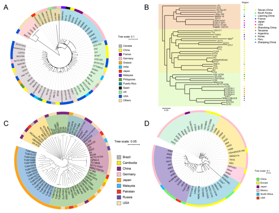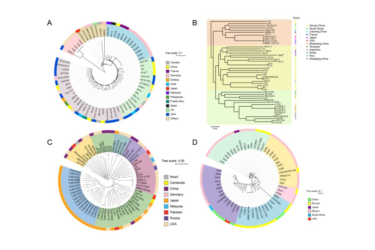 圖5.根據Vibrio alginolyticus (A)Shewanella algae (B) Acinetobacter junii (C) Acinetobacter haemolyticus (D)核心基因組序列,