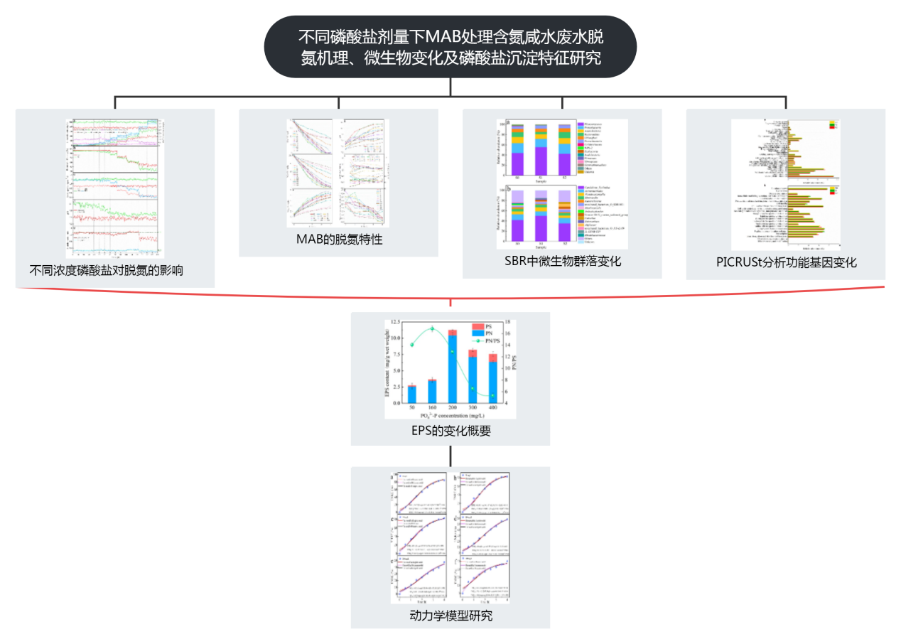 2021年4月,青島大學(xué)在《Bioresource Technology》發(fā)表題為“Deciphering nitrogen removal mechanism through marine anammox bacteria treating nitrogen-laden saline wastewater under various phosphate doses: Microbial community shift and phosphate crystal”的研究論文,該論文主要研究了(1)不同磷酸鹽劑量下MAB(marine anammox bacteria,海洋厭氧菌)的脫氮機制;(2)微生物群落變化;(3)磷酸鹽沉淀的組成和特征。