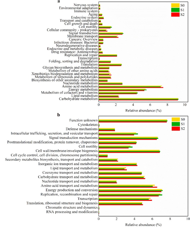 圖5.基于(a) KEGG和(b) COG 數據庫的PICRUSt分析