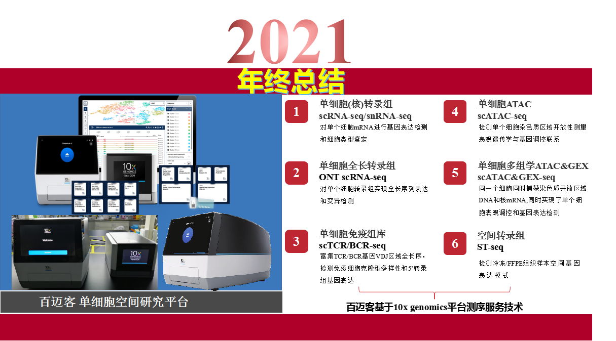 百邁客剛剛回顧了2021年重大成果產(chǎn)出,其中包括通量/質(zhì)量雙升級、科研產(chǎn)出3000+分、生物云+智能制造創(chuàng )新開(kāi)啟新征程、上萬(wàn)人次行業(yè)交流等幾個(gè)方面重大事件,可見(jiàn)2021是豐收的一年,是成長(cháng)的一年。百邁客單細胞系列產(chǎn)品也同樣迎來(lái)新臺階,實(shí)現了平臺的快速發(fā)展,讓我們一起重溫單細胞產(chǎn)品部2021的那些大小事件。