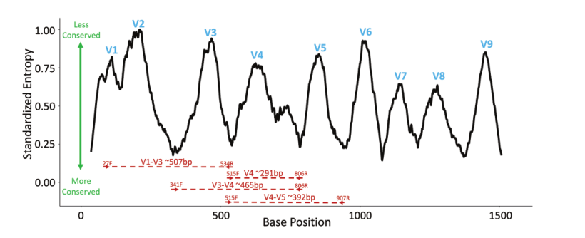 圖1.16S rRNA基因保守區和可變區的示例圖。