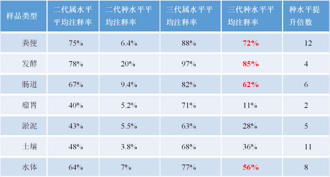 全長(cháng)微生物多樣性?xún)?yōu)勢二:種水平注釋率高