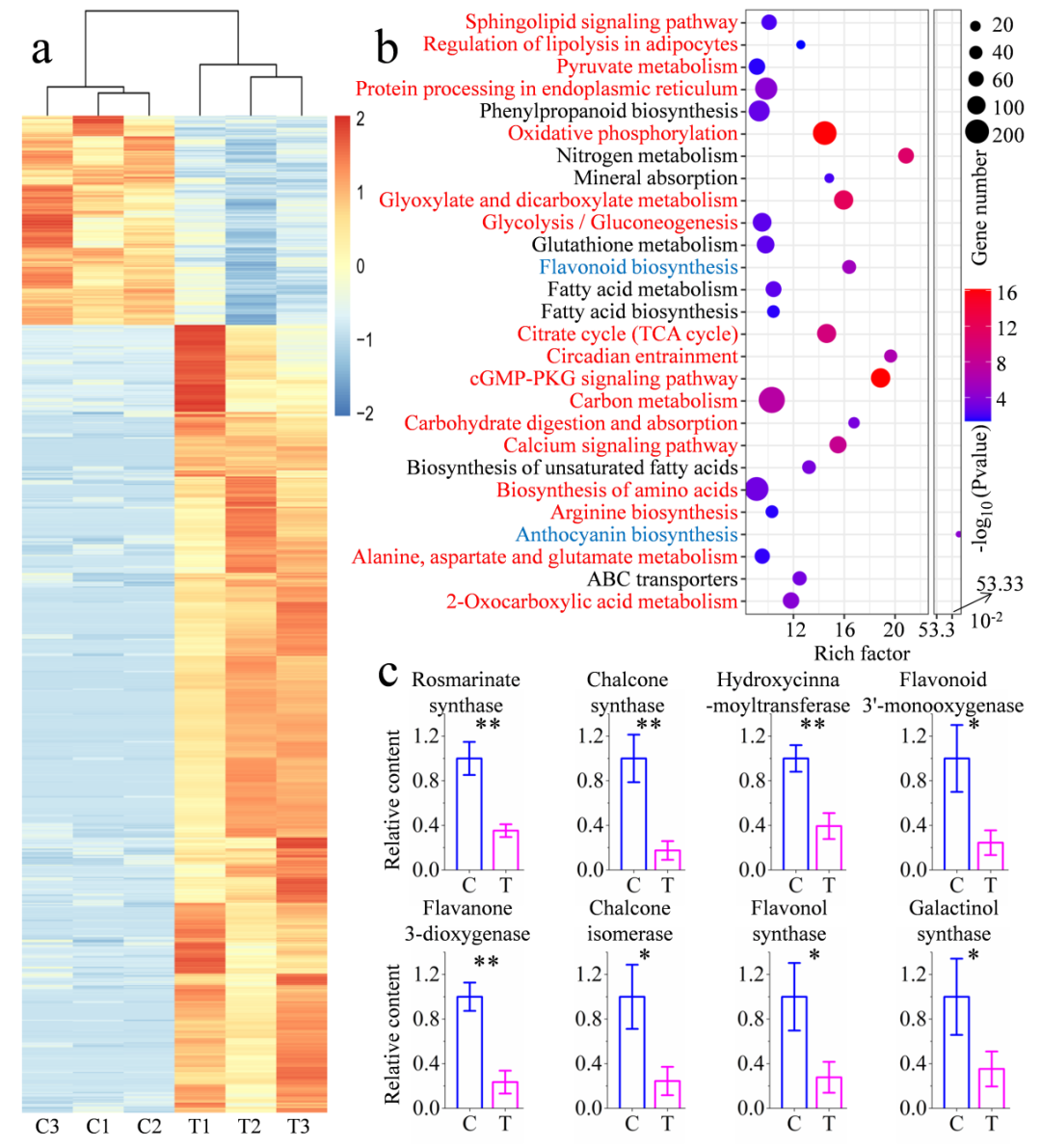 3、四環(huán)素脅迫下根中類(lèi)黃酮代謝基因下調