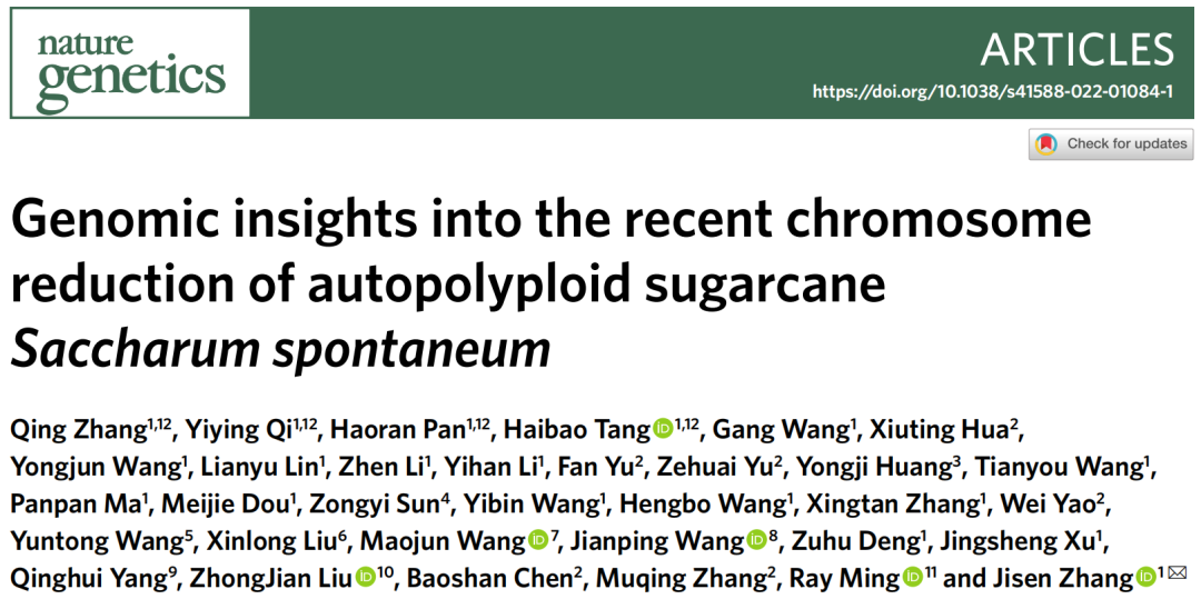 福建農林大學(xué)海峽聯(lián)合研究院基因組中心張積森課題組博士生張清(目前中國農科院深圳農業(yè)基因組研究所工作)、齊浥穎、碩士生潘浩然和基因組中心唐海寶教授為論文共同第一作者,基因組中心張積森教授為通訊作者。張積森教授團隊長(cháng)期從事以甘蔗基因組學(xué)與分子育種研究,該成果是基因組中心團隊在甘蔗領(lǐng)域發(fā)表的第2篇Nature Genetics論文,作為近60年以來(lái)發(fā)表研究刊物高的甘蔗論文,該研究將進(jìn)一步奠定我國在甘蔗基礎研究領(lǐng)域的學(xué)術(shù)地位。