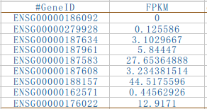 ???? 基因表達量文件 ,如果沒(méi)有預測的新基因,文件只需要提供gene ID 和表達量如下: