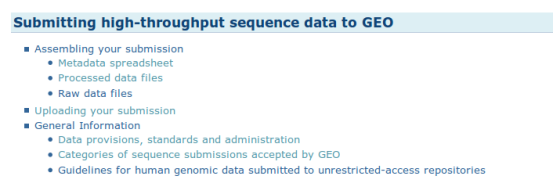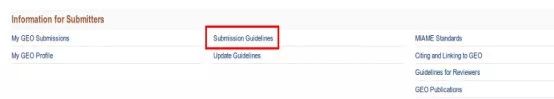 登錄成功后,回到GEO的主頁(yè),點(diǎn)擊 ?Submission Guidelines