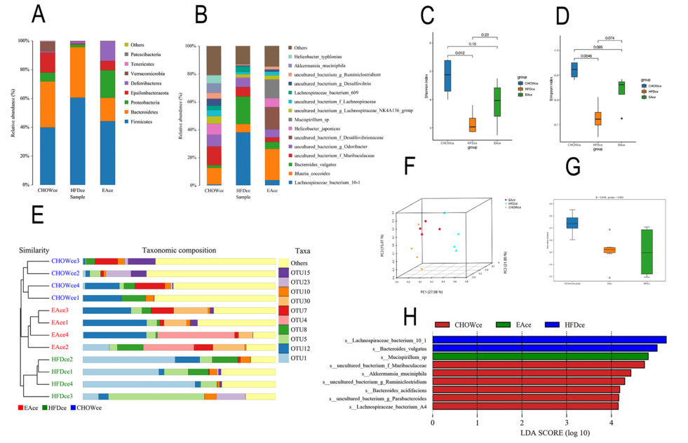 3、EA 恢復了空腸和盲腸中失調的微生物菌群