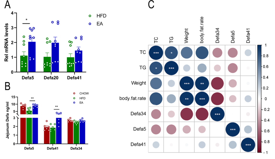 4、EA促進(jìn)防御素表達并抑制肥胖小鼠空腸脂質(zhì)吸收