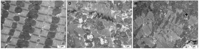 圖2. 各組大鼠心肌組織透射電鏡圖像