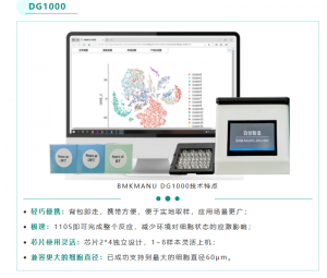 最后,制備合格的單細胞懸浮液/原生質(zhì)體/細胞核樣本,可以直接通過(guò)百創(chuàng )DG1000單細胞微液滴系統,實(shí)現高通量的單細胞精準捕獲。百創(chuàng )DG1000是基于微流控、油滴包裹和Barcode標記等技術(shù)來(lái)實(shí)現高通量的細胞捕獲。除了儀器以外,百創(chuàng )DG1000還有配套的2×4的獨立芯片及配套試劑盒。