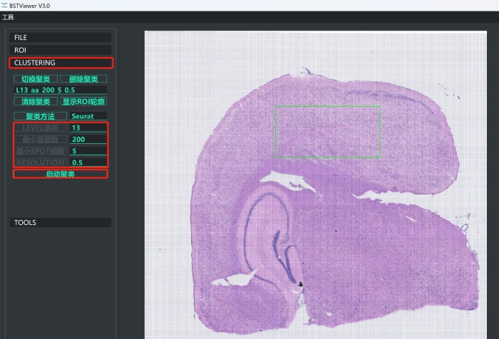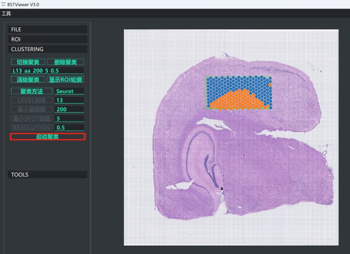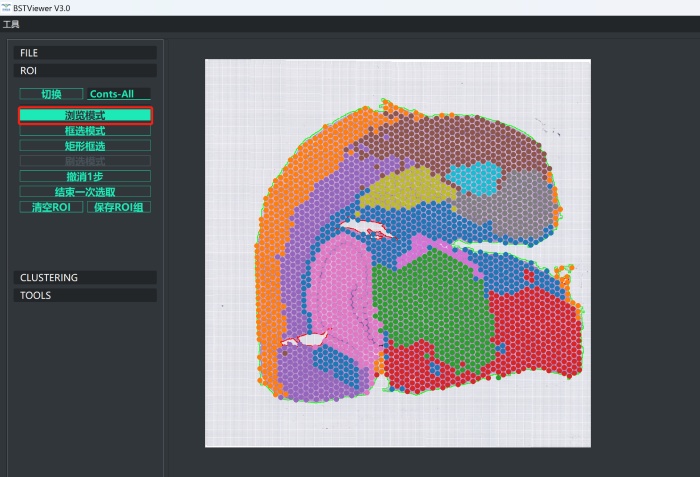 6)最后得到框選到的感興趣區域的聚類(lèi)結果,點(diǎn)擊“ROI”切換為“瀏覽模式”可以通