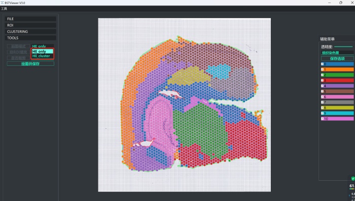 7)聚類(lèi)圖片可以在TOOLS欄中進(jìn)行保存。點(diǎn)擊圖畫(huà)模式可以選擇“僅保存HE”和“HE&Cluster”分別進(jìn)行保存。