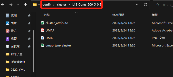1)cluster聚類(lèi)結果保存在“outdir文件夾”中的“cluster”中。包含cluster聚類(lèi)圖片、barcode信息、UMAP、tSNE聚類(lèi)結果。