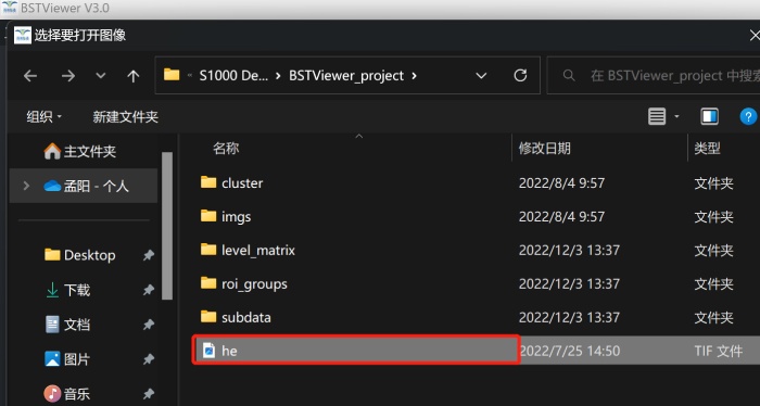 1)將官網(wǎng)下載到的BSTViewer_project文件夾數據(或者通過(guò)運行BSTMatrix 得到的BSTViewer_project 文件夾)存放到英文命名的文件夾之中;【包括各個(gè)級別分辨率矩陣文件,及BMChiper 或者官網(wǎng)下載的HE 染色圖片】可以同時(shí)在此文件夾下邊新建一個(gè)outdir 作為文件輸出路徑;