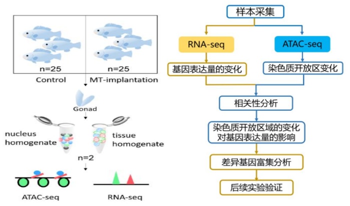 采用ATAC-seq和RNA-seq聯(lián)合分析斜帶石斑魚(yú)(雌雄同體)性腺在性逆轉過(guò)程中的開(kāi)放染色質(zhì)區域和TF結合位點(diǎn),以探究斜帶石斑魚(yú)性逆轉的分子機制。
