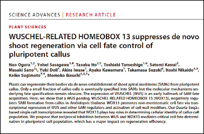 WOX13控制擬南芥愈傷組織細胞命運來(lái)抑制新生芽再生