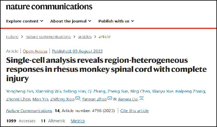單細胞技術(shù)解析靈長(cháng)類(lèi)脊髓損傷修復機制
