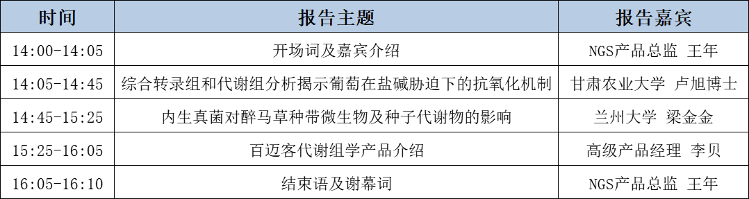 2023年9月8日,百邁客生物誠邀質(zhì)譜技術(shù)研究領(lǐng)域的優(yōu)秀博士舉辦“質(zhì)譜技術(shù)引領(lǐng)多組學(xué)新時(shí)代”博士沙龍研討會(huì )。本次研討會(huì )由百邁客農學(xué)NGS市場(chǎng)部副總監王年主持,邀請了甘肅農業(yè)大學(xué)園藝學(xué)院盧旭博士和蘭州大學(xué)草地農業(yè)科技學(xué)院梁金金,分別以《綜合轉錄組和代謝組分析揭示葡萄在鹽堿脅迫下的抗氧化機制》和《內生真菌對醉馬草種帶微生物及種子代謝物的影響》為主題,共同探討質(zhì)譜多組學(xué)技術(shù)在農學(xué)研究中的應用。